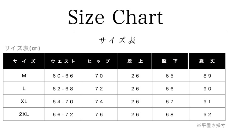 Lサイズ/ウエスト62~68、ヒップ72、股上26、股下66、総丈90