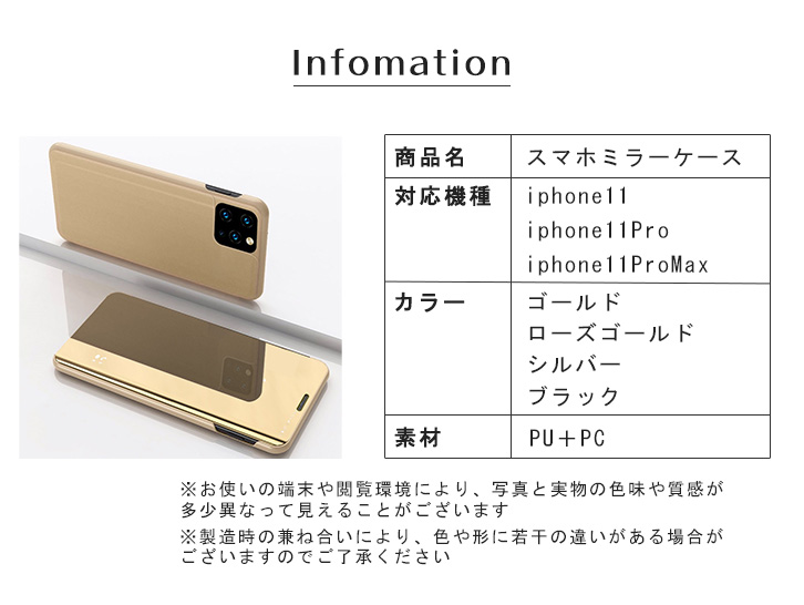 Phoneケース iPhoneカバー ケース カバー iPhone11 iPhone11Pro iPhone11ProMAX ミラーケース 手帳型 全4色 手帳型ケース 鏡 おしゃれ 鏡面 かわいい シンプル ゴールド ローズゴールド シルバー ブラック