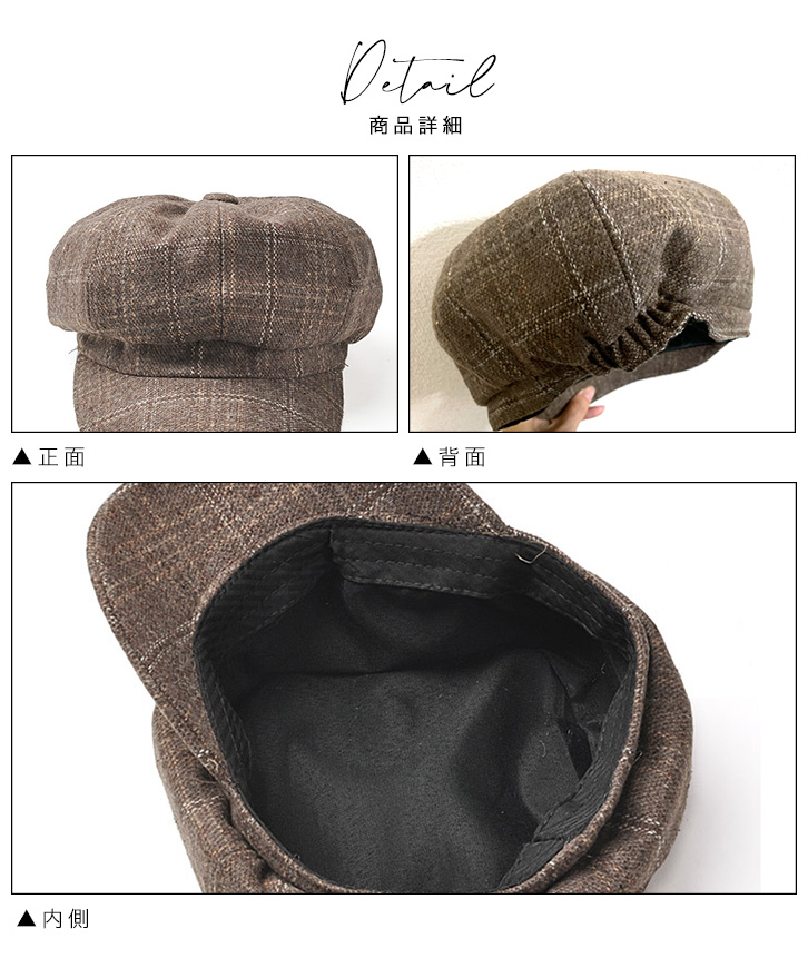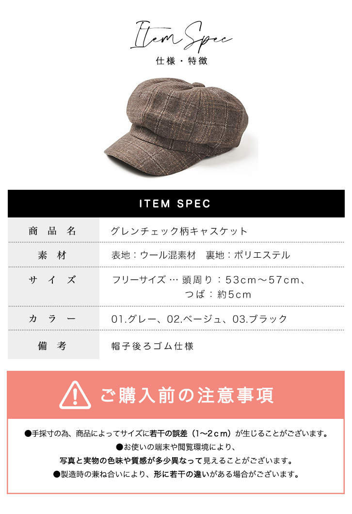キャスケット 帽子 レディース ぼうし レディース帽子 おしゃれ チェック チェック柄 シンプル オールシーズン トレンド ベーシック チェック柄キャスケット 小顔効果 グレンチェック 全3カラー 合わせやすい グレー ベージュ ブラック