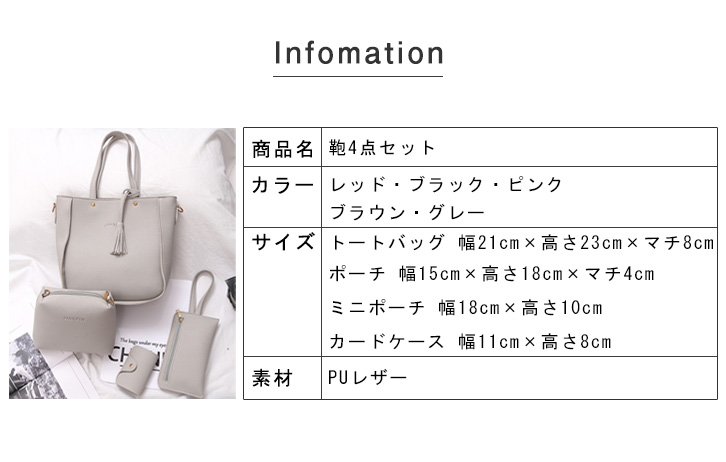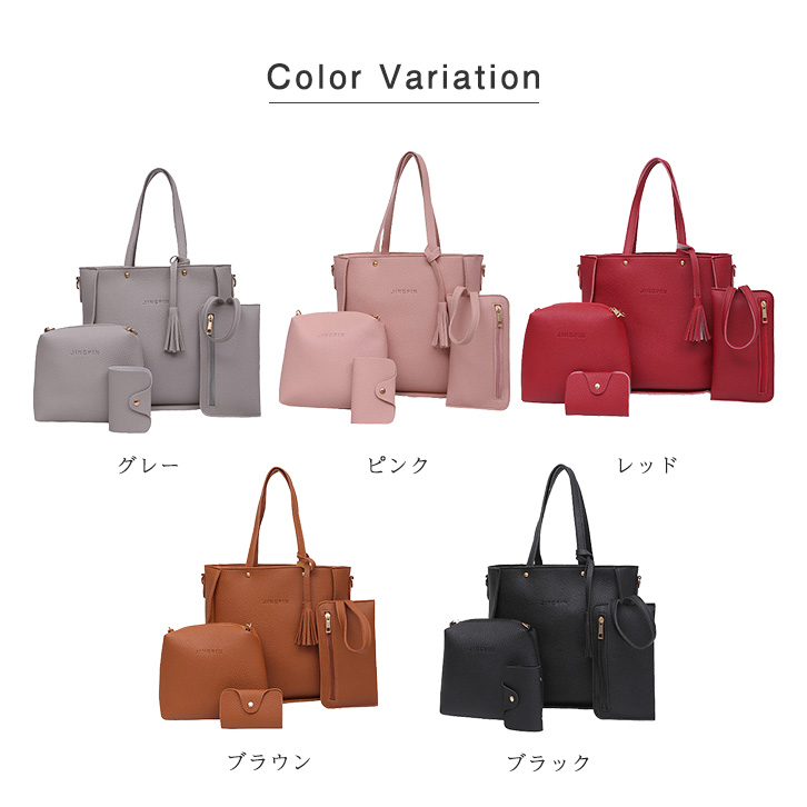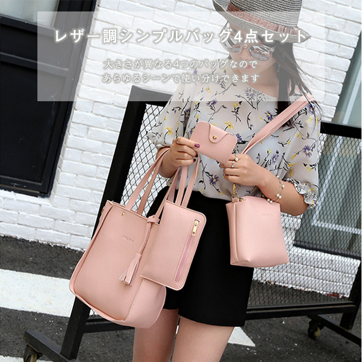 レディースバッグ ハンドバッグ バッグ 4点セット ミニショルダーバッグ ポーチ ミニポーチ カードケース 収納力抜群 カバン4点セット トートバッグ レザー調 シンプル 合わせやすい 大容量トートバッグ ファスナー開閉