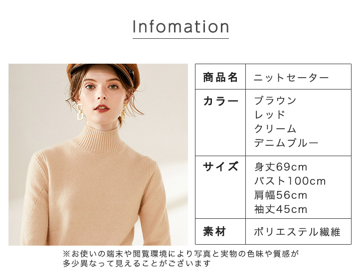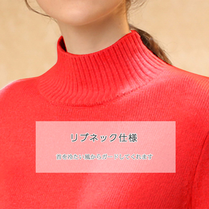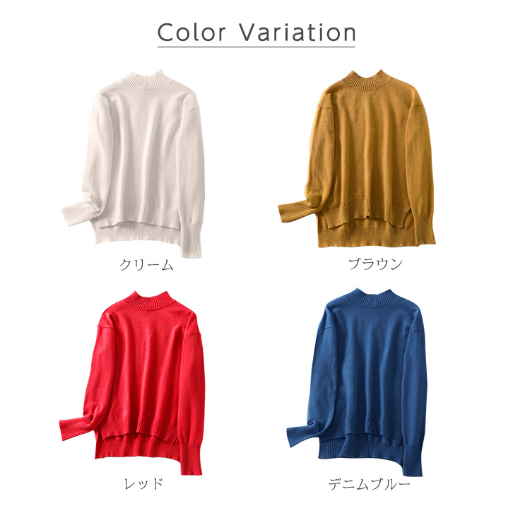 ニット セーター レディース レディースニット レディースセーター 長袖 秋 冬 リブネック シンプル 無地 着回し抜群 合わせやすい ストレッチ性 リブ袖 サイドスリット入り 全4色 4カラー ブラウン レッド クリーム デニムブルー カラー豊富 おしゃれ カジュアル