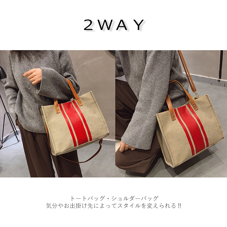 バッグ キャンバスバッグ ハンドバッグ ショルダーバッグ 2wayバッグ 肩掛け 斜め掛け ショルダー ツートンカラー バイカラー 収納力抜群 大容量収納 内側ポケット マグネット開閉 シンプル おしゃれ カジュアル デイリー お出かけ 通勤 通学