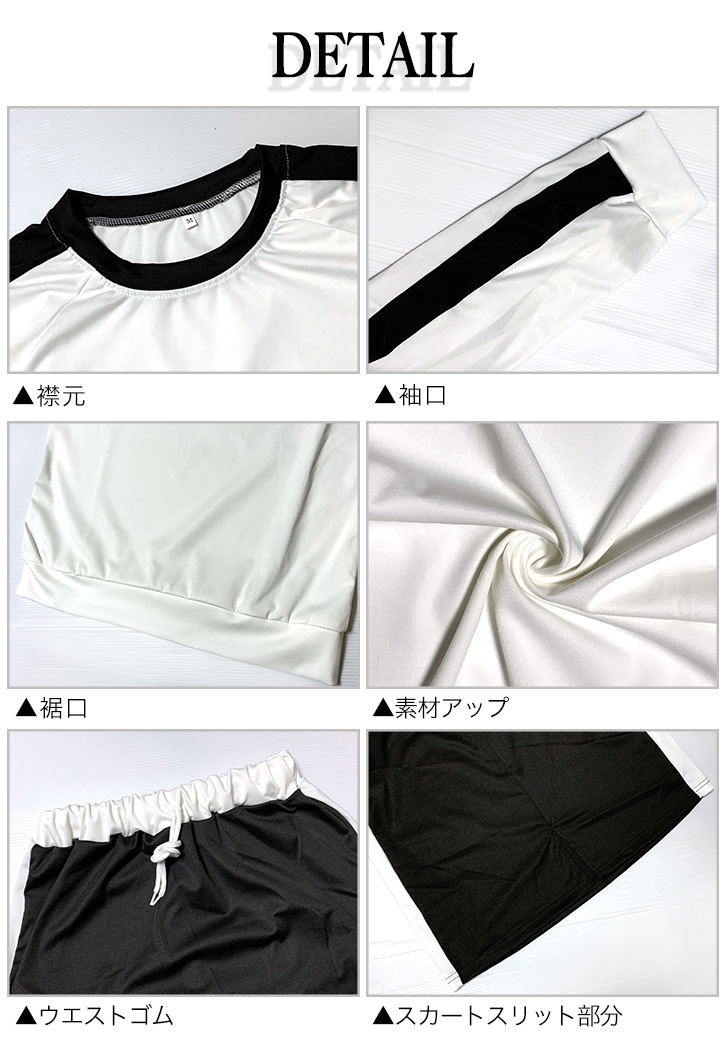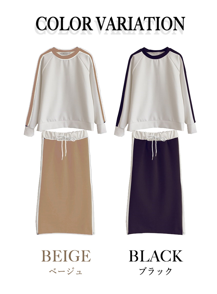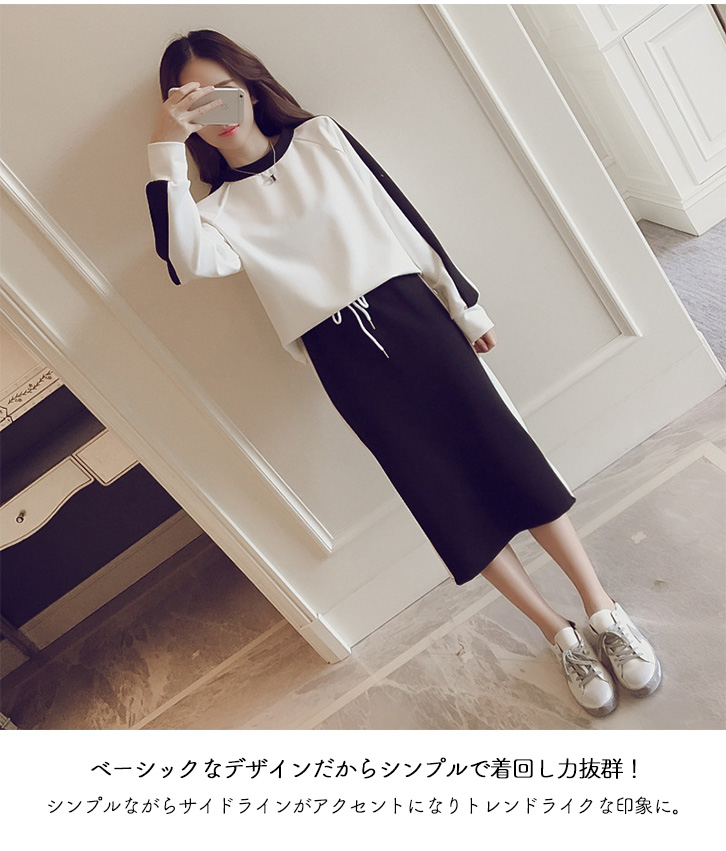 セットアップ 上下セット レディース 長袖 スカート サイドライン トレンド スポーティー シンプル ウエストゴム スリット入り ストレッチ デイリー 着心地快適 通気性抜群 伸縮性 ジャージ風 動きやすい 着回し抜群