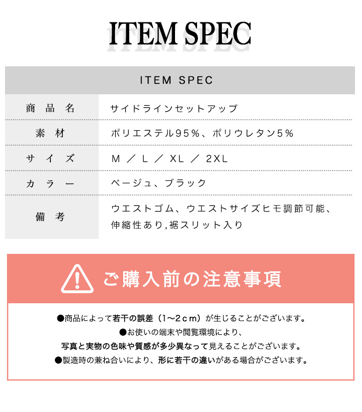 伸縮性あり、裾スリット入り