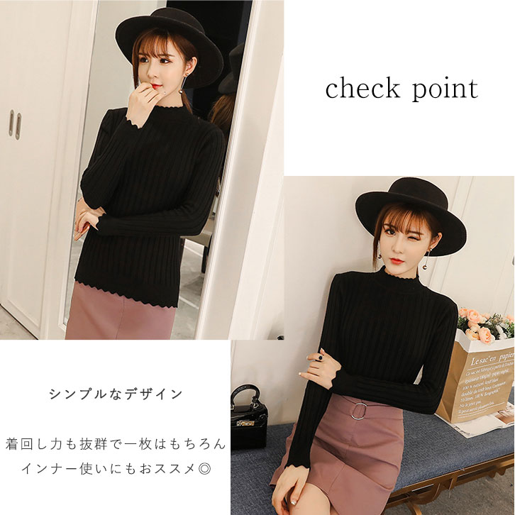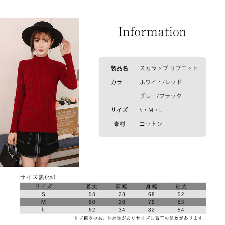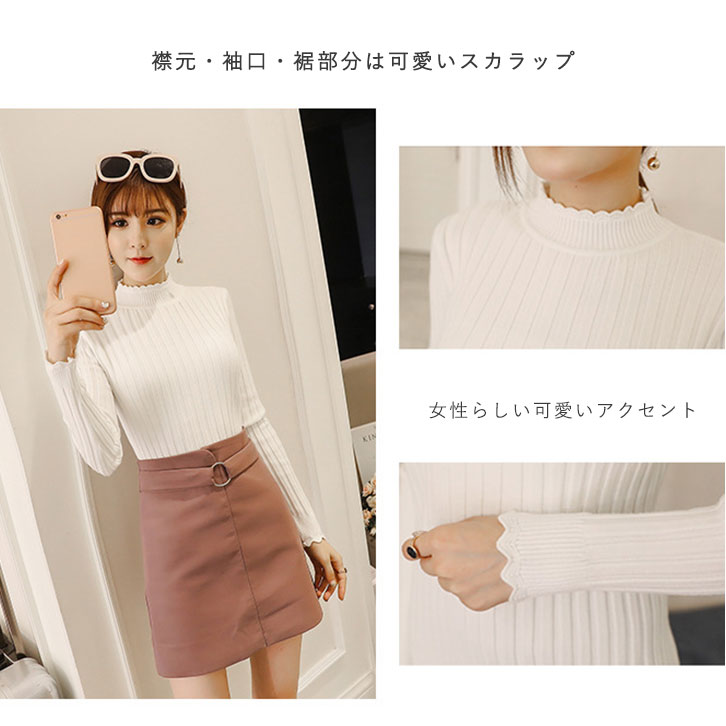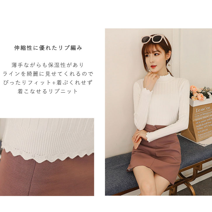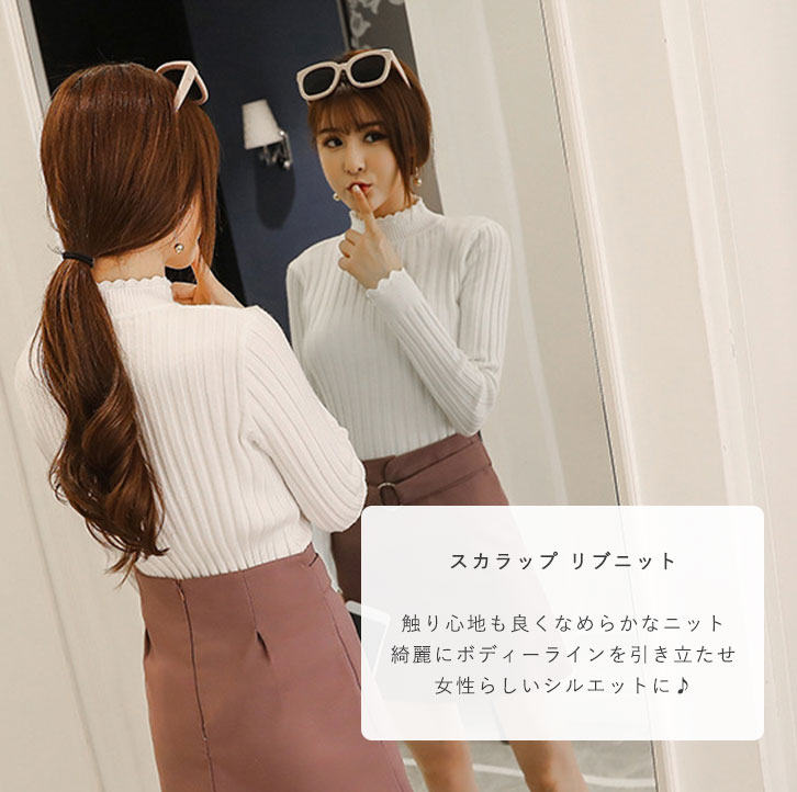 ニット レディース リブニット レディースニット 長袖 秋 冬 春 スカラップリブニット 着心地快適 なめらか 美シルエット スカラップ 大人可愛い 女子力アップ リブ編み 伸縮性 薄手 シンプル 着回し抜群 全4カラー カラー豊富 カラーバリエーション