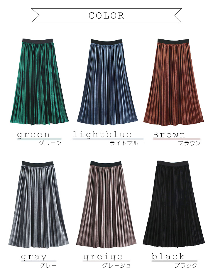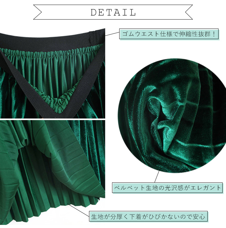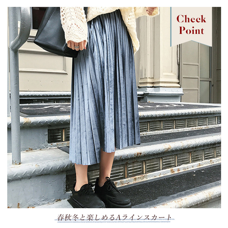 レディース スカート プリーツスカート ミモレ丈 ロング丈 フリーサイズ プリーツ ベルベット かわいい おしゃれ 大人カジュアル 着回し抜群 秋 冬 ベロアスカート 光沢感 上品 Aラインスカート 通勤 通学 デイリー ウエストゴム