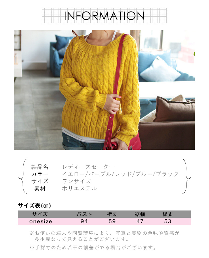 セーター ニット レディース 長袖 秋 冬 カジュアル 大人カジュアル ケーブル編み シンプル 着回し抜群 大人かわいい レイヤードスタイル 定番 合わせやすい カラー豊富 カラーバリエーション豊富 全5カラー ワンサイズ
