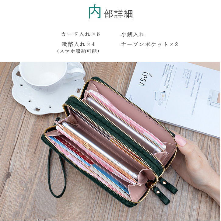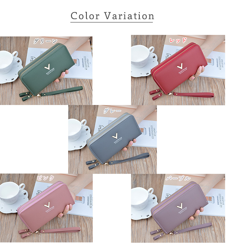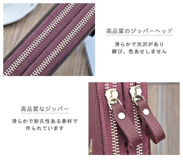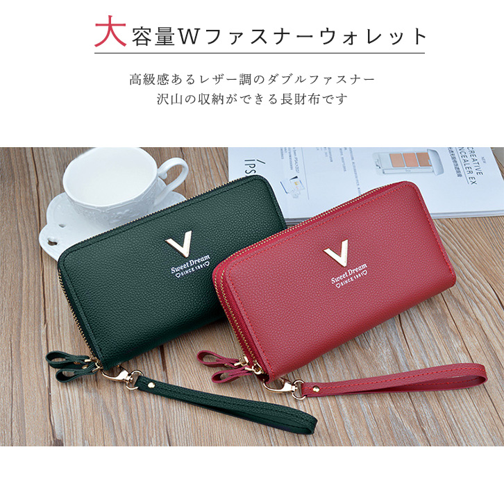 長財布 レディース レディース長財布 レディース財布 ダブルジッパー ロングウォレット 多機能 大容量 レザー調 高級感 収納力抜群 リストバンド付き ストラップ 高品質 耐久性抜群 全5色 カラーバリエーション豊富