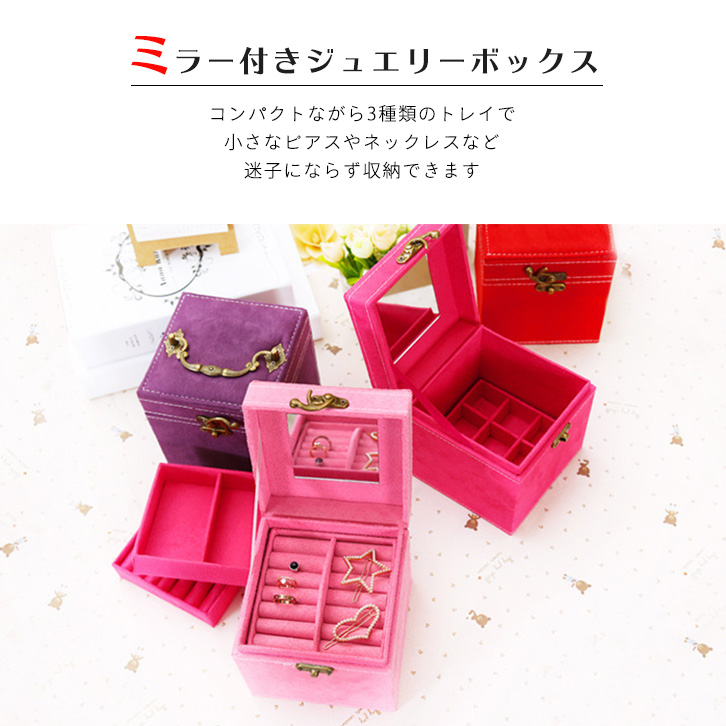 アクセサリーボックス ジュエリーボックス 収納ボックス アクセサリー収納 ジュエリー収納 ミラー付き アンティーク 3段収納 大容量 コンパクト 収納力抜群 クッション付き リング ピアス イヤリング 小物 ブレスレット ネックレス
