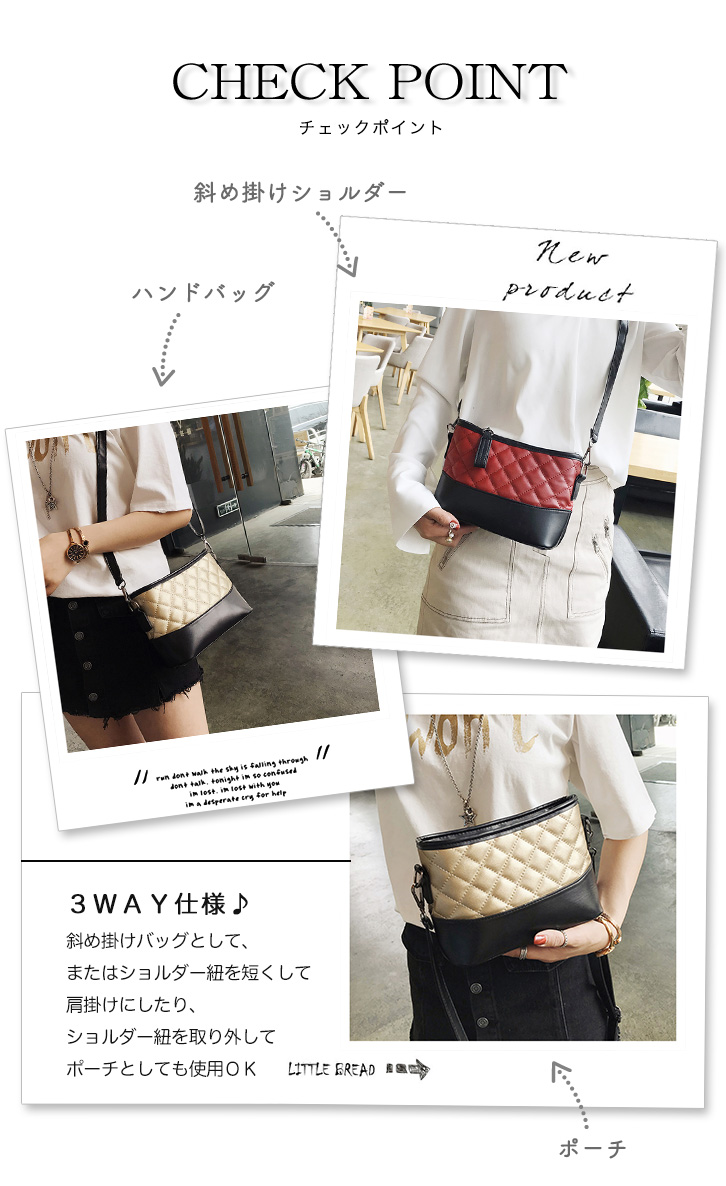 バッグ ショルダーバッグ ハンドバッグ ポーチ 3way バイカラー キルティングバッグ 斜め掛け 肩掛け ショルダー紐長さ調節可能 コンパクト 収納力抜群 ファスナー開閉 シンプル 合わせやすい 大人かわいい ミニバッグ