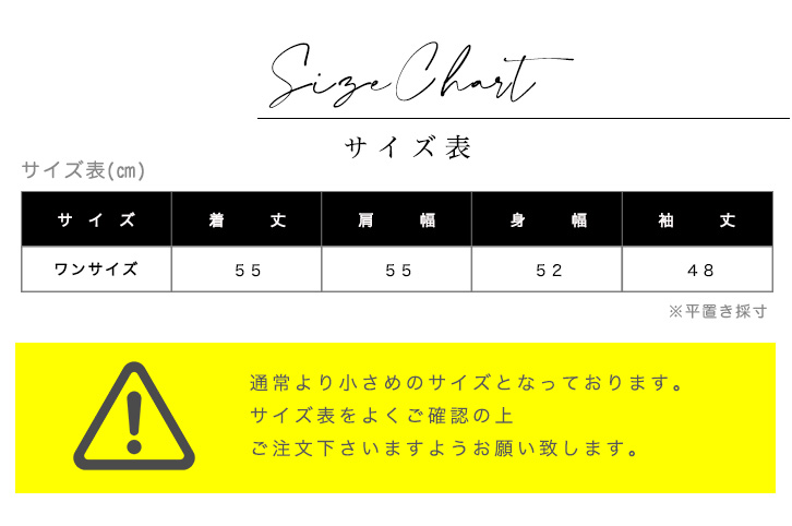 着丈55、肩幅55、身幅52、袖丈48