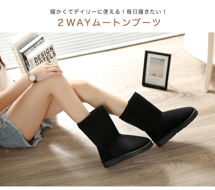ムートンブーツ レディース ブーツ ムートン レディースブーツ あったか 2way デイリー使い シンプル 無地 ふわふわ 快適 フェイクファー 裏地あったか 履き心地抜群 ぺたんこ 歩きやすい 疲れにくい 歩き心地抜群
