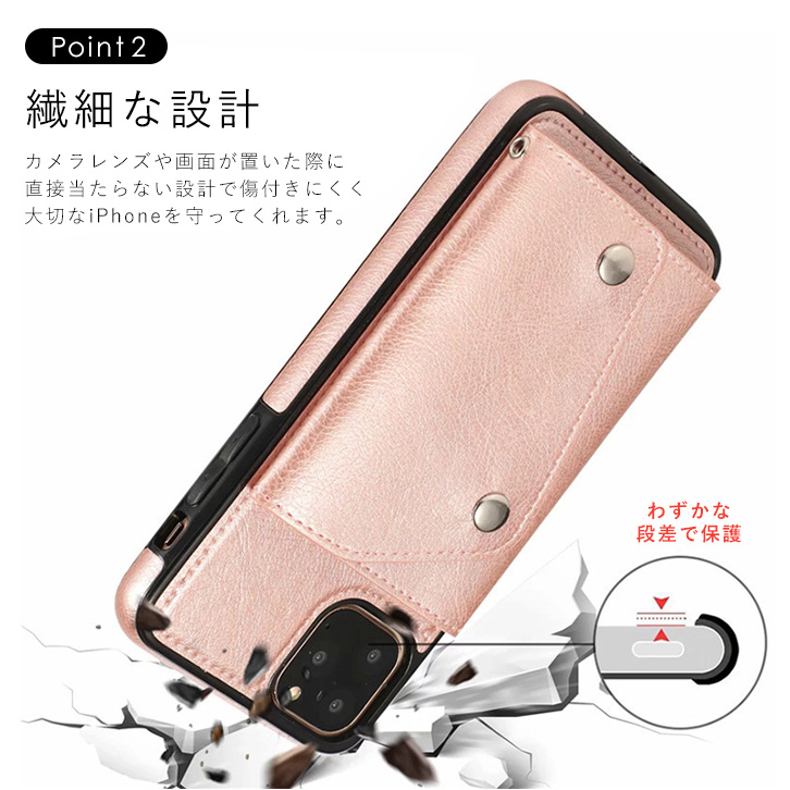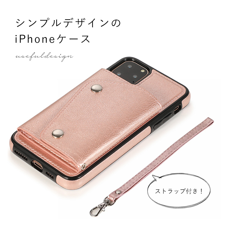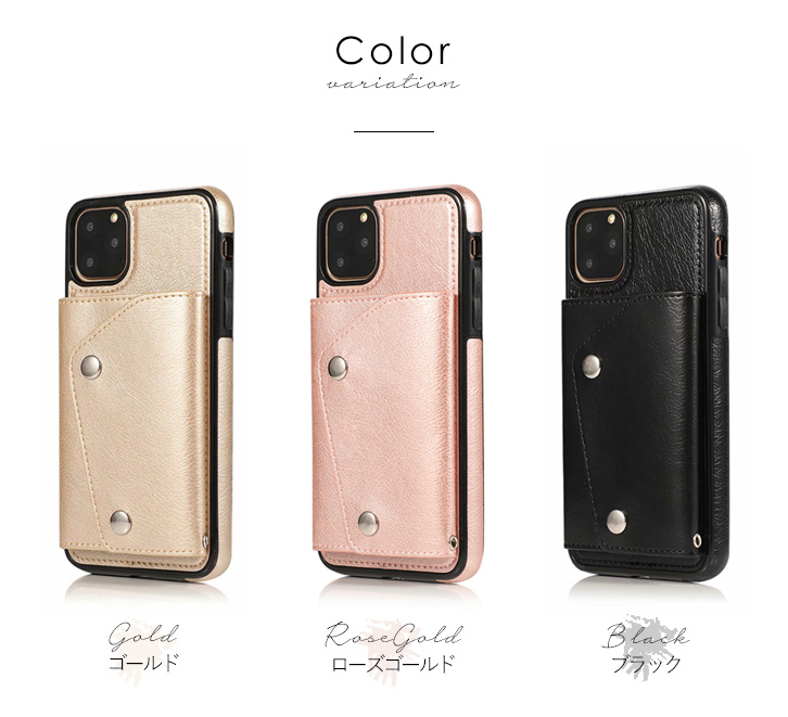 iPhoneケース iPhoneカバー ケース カバー iPhone11 iPhone11Pro iPhone11ProMAX ミニウォレットケース カード収納 シンプル スクラッチ防止 操作性抜群 スタンド機能 動画視聴 全3カラー ゴールド ローズゴールド ブラック