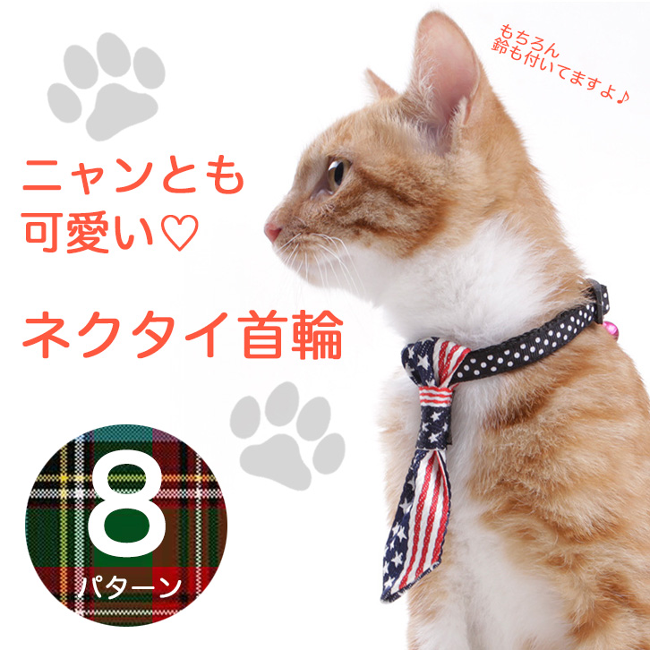 首輪 猫用 猫 ネコ用首輪 かわいい おしゃれ ネクタイ首輪 ネクタイ オシャレ キュート 鈴付き くびわ パターン豊富 お洒落 ハンサム 子猫 ペット用品 ペット用 ペット チェック ストライプ 星 首周り調節可能 全8種類