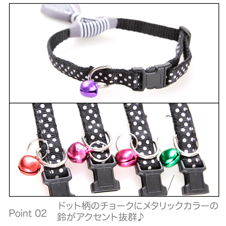 またドット柄のチョークにメタリックカラーの鈴が付いているのも