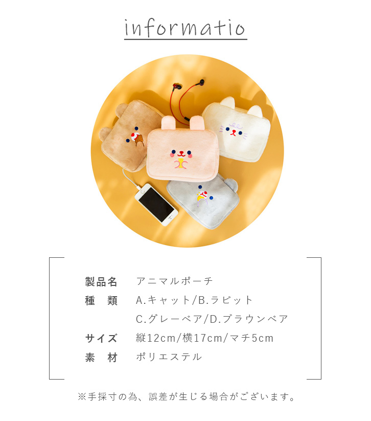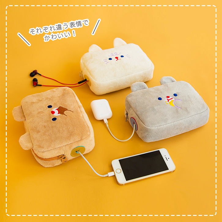 ポーチ コスメポーチ マルチポーチ 小物入れ 文房具 筆記用具 メイクポーチ シンプル 収納力抜群 かわいい アニマル 学校 習い事 お出かけ コード穴付き キュート 耐衝撃 タイプ豊富