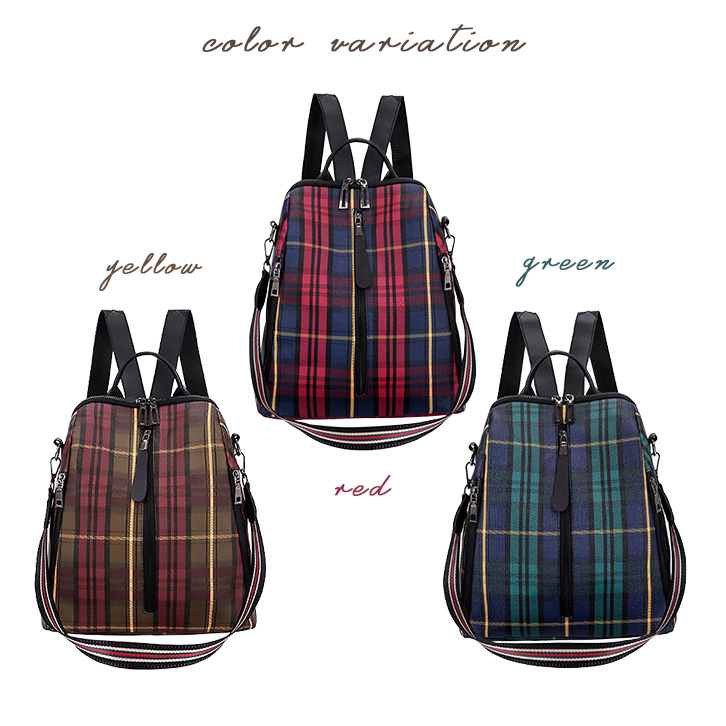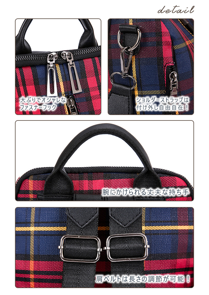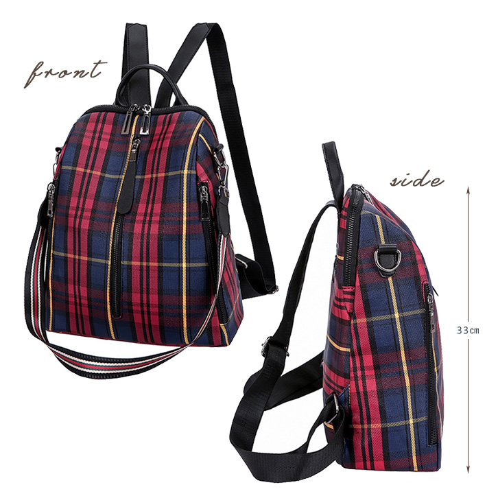 リュック バックパック レディース リュックサック チェック 3wayリュック レディースリュック チェック柄 タータンチェック 可愛い オシャレ アンティーク クラシック ショルダーストラップ取り外し可能 ファスナー開閉 肩ベルト調節可能