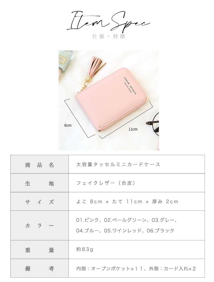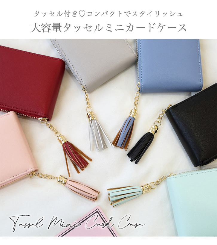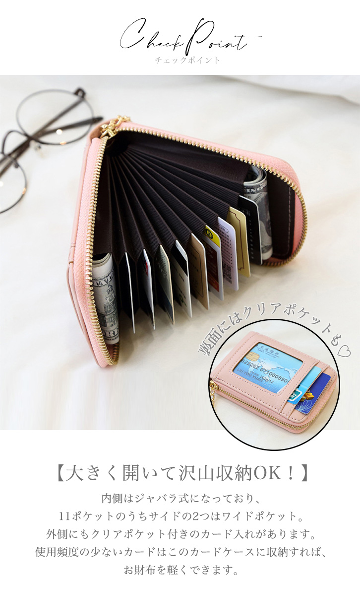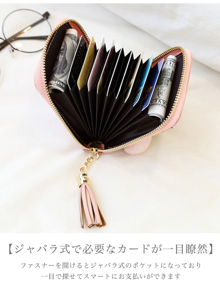カードケース ミニカードケース 大容量 カード入れ カード収納 タッセル スキミング防止 シンプル 上品 大人かわいい 収納力抜群 11ポケット クリアポケット 磁気防止 磁気遮断 ジャバラ式 探しやすい 便利 ファスナー開閉