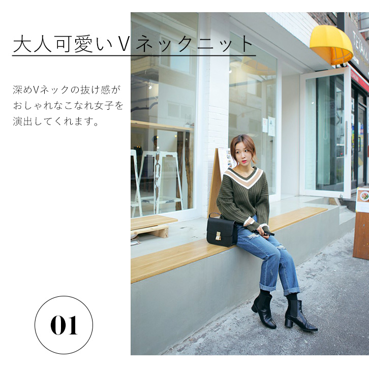 バイカラーデザインの深めVネックで大人可愛さをUP☆