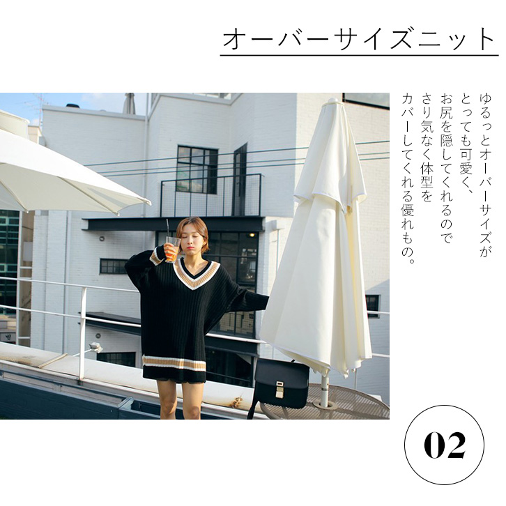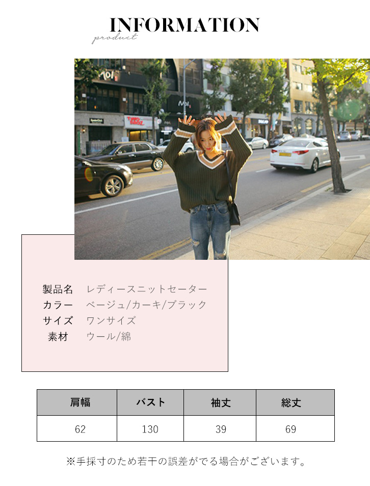 ニット セーター レディース 長袖 Vネック おしゃれ ゆるっと感 オーバーサイズ 大人かわいい カジュアル 体型カバー バイカラーライン おしゃれ 着回し抜群 秋 冬 シンプル 合わせやすい ベージュ カーキ ブラック ワンサイズ