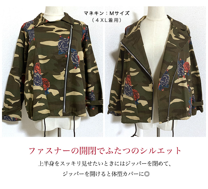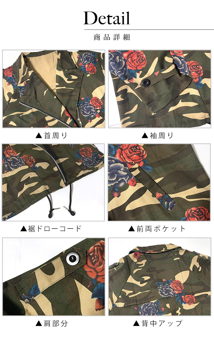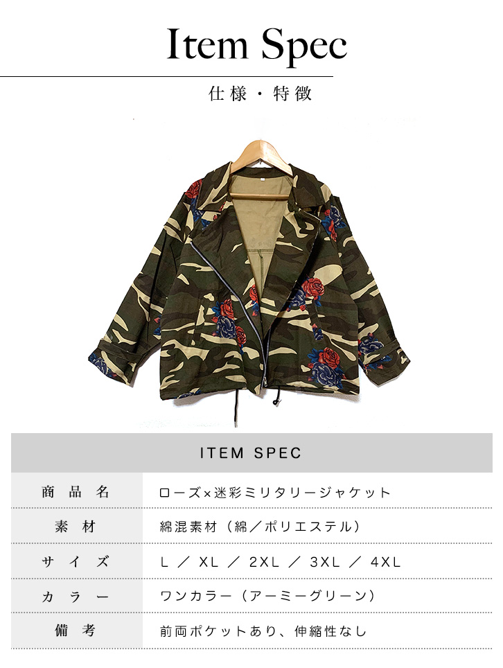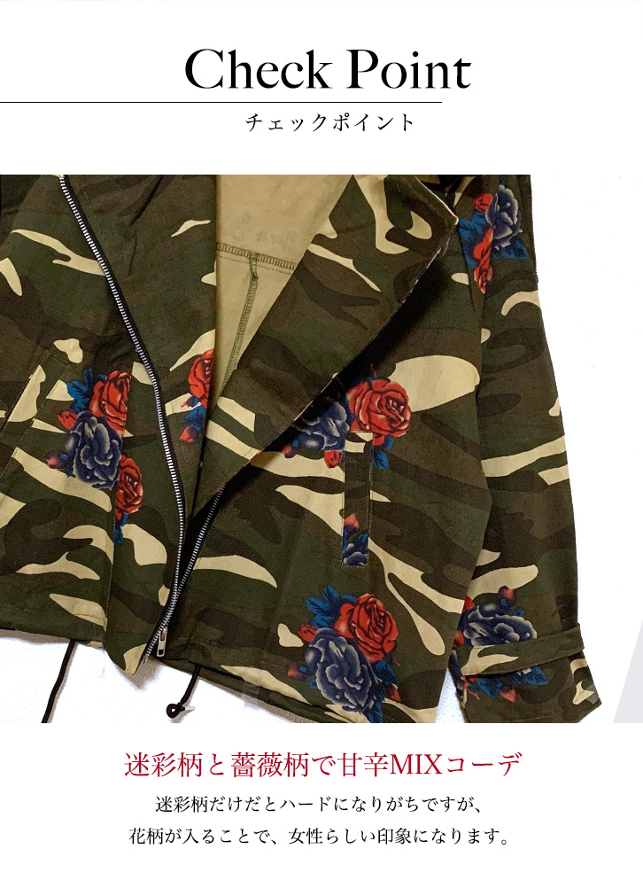 ジャケット ミリタリージャケット アウター 迷彩柄 バラ柄 甘辛ミックス オシャレ 個性的 カモフラ柄 カモフラージュ柄 サイズ豊富 羽織り レディース 長袖 秋 冬 春 薔薇 花柄 ショート丈 花 アーミーグリーン お洒落