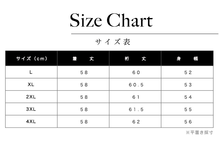3XLサイズ/着丈58、裄丈61.5、身幅55