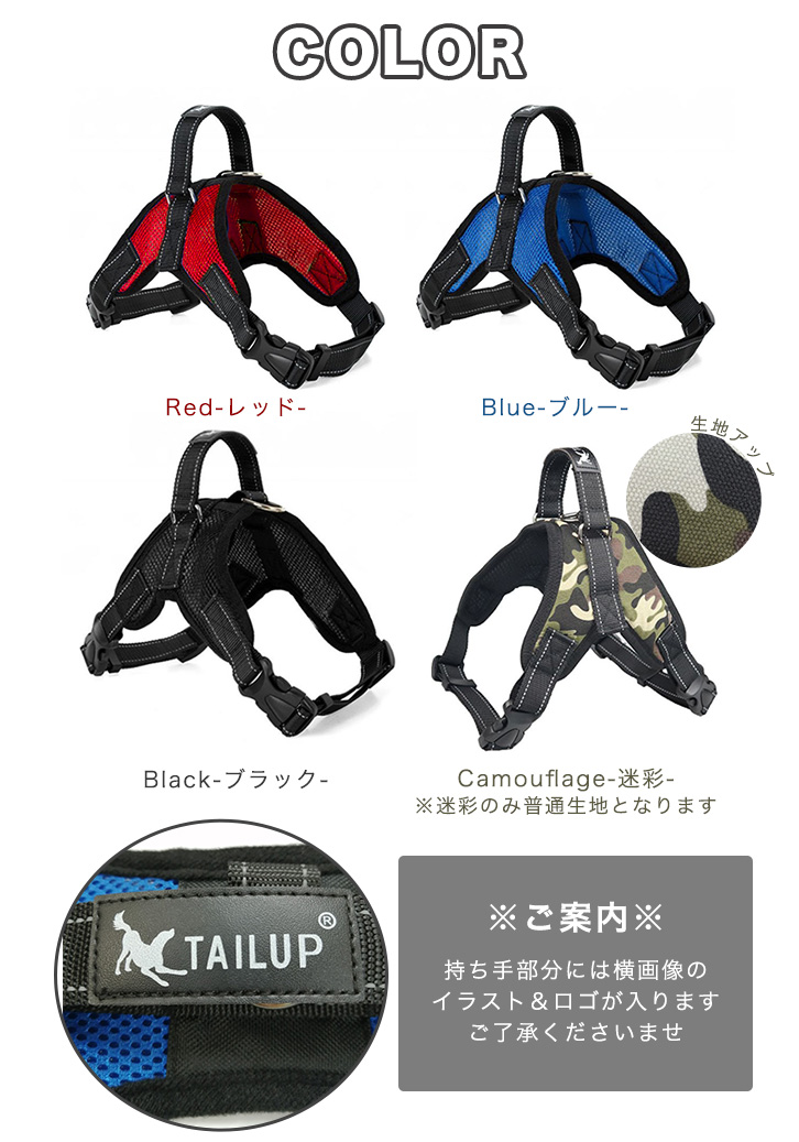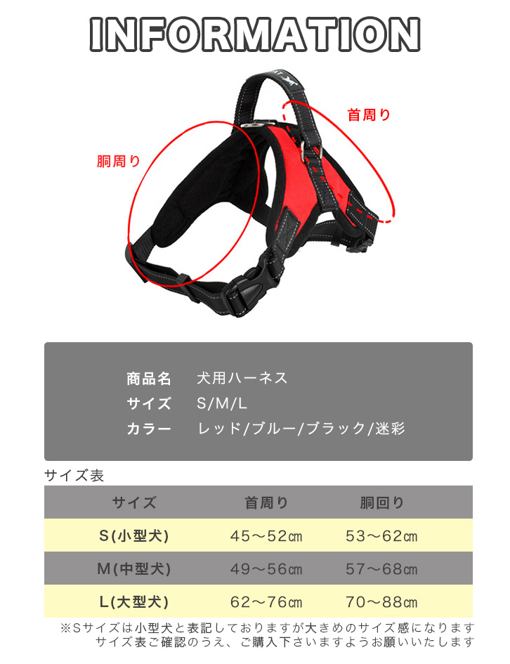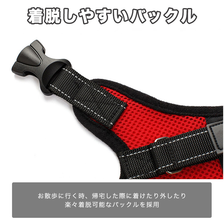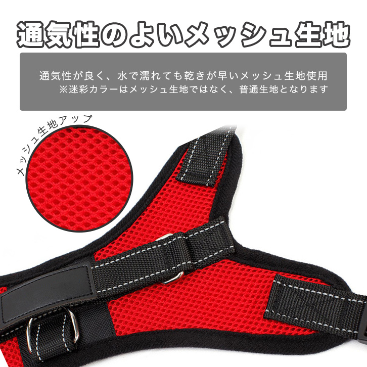 ハーネス 犬用 ドッグハーネス ペット用品 小型犬 中型犬 大型犬 犬用ハーネス 散歩 お出かけ サイズ調節可能 着脱簡単 通気性抜群 メッシュ素材 首にやさしい 胴輪 ペット レッド ブルー ブラック 迷彩 全4タイプ