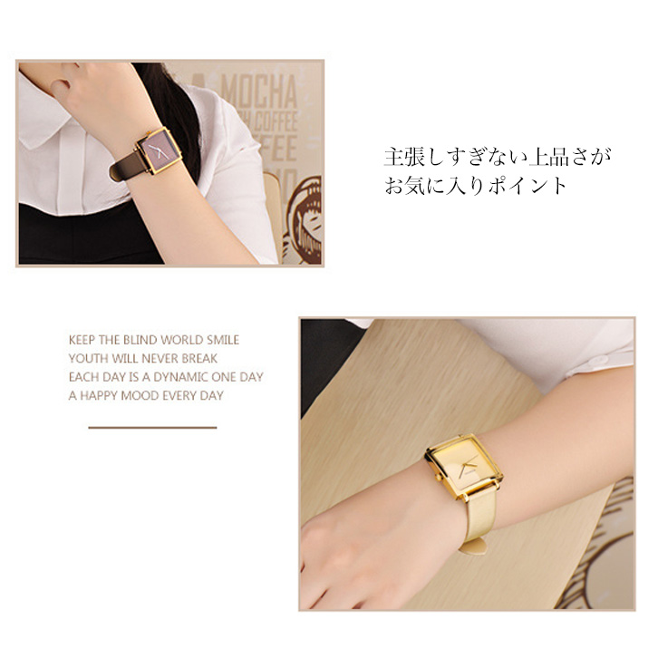 腕時計 レディース ウォッチ レディースウォッチ シンプル スクエア 四角 正方形 時計 上品 大人かわいい きれいめ かわいい 全5色 カラー豊富 カラーバリエーション ホワイト シルバー ブラック ゴールド ブラウン 合わせやすい
