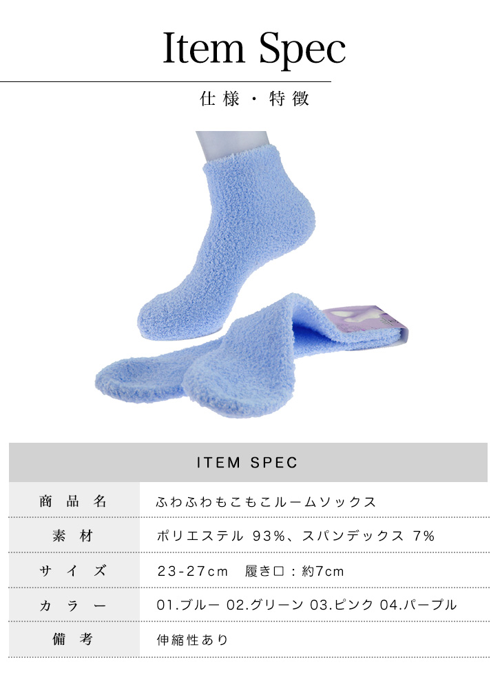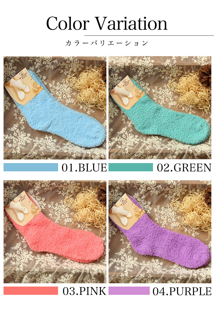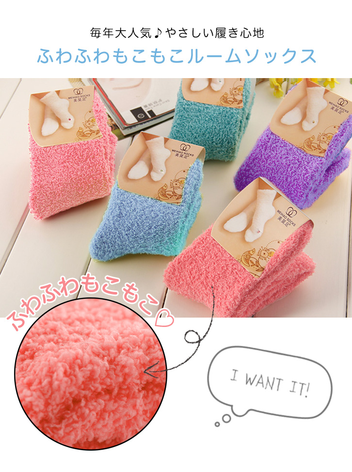 靴下 ルームソックス ふわふわ もこもこ あったかい 履き心地抜群 定番 保温性抜群 リラックスタイム 伸縮性抜群 秋冬 レディース シンプル カラー豊富 4色展開 ブルー グリーン ピンク パープル ソックス ショート丈
