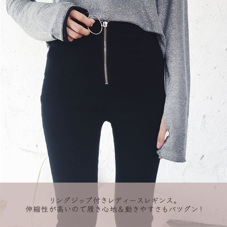 レギンス レディース 伸縮性 リングジップ 動きやすい 履き心地抜群 おしゃれ ポケット付き 着回し リラックス 部屋着 ストレッチ 快適 ストレスフリー ブラック