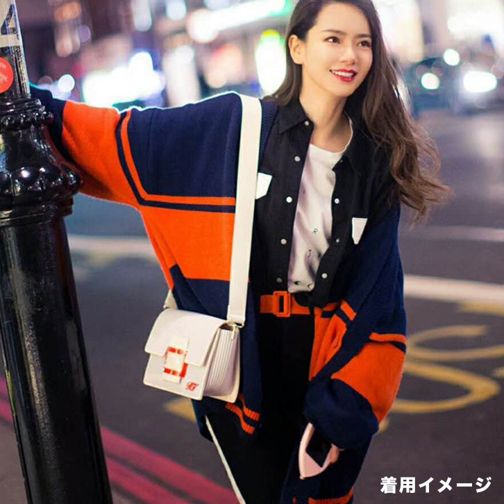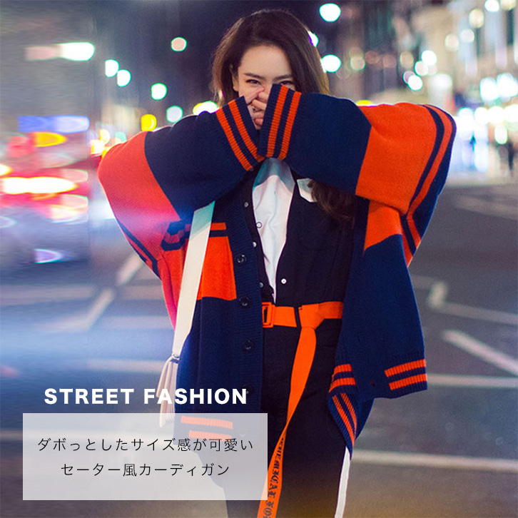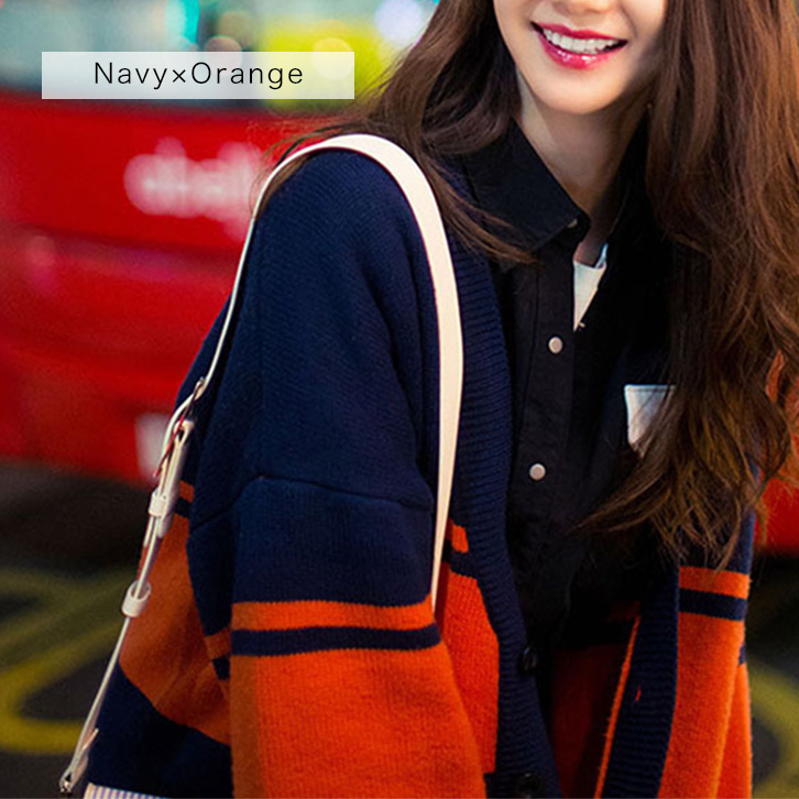 カーディガン セーター レディース 長袖 カーディガンセーター ゆるっとシルエット セーター風カーディガン おしゃれ 羽織り カジュアル ストリート 個性的 オシャレ かっこいい 大人カジュアル 差し色 ボーダー ネイビー オレンジ