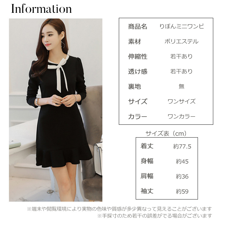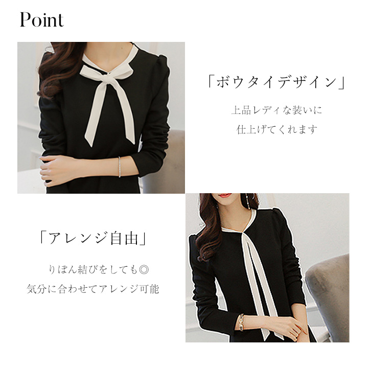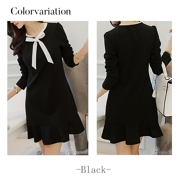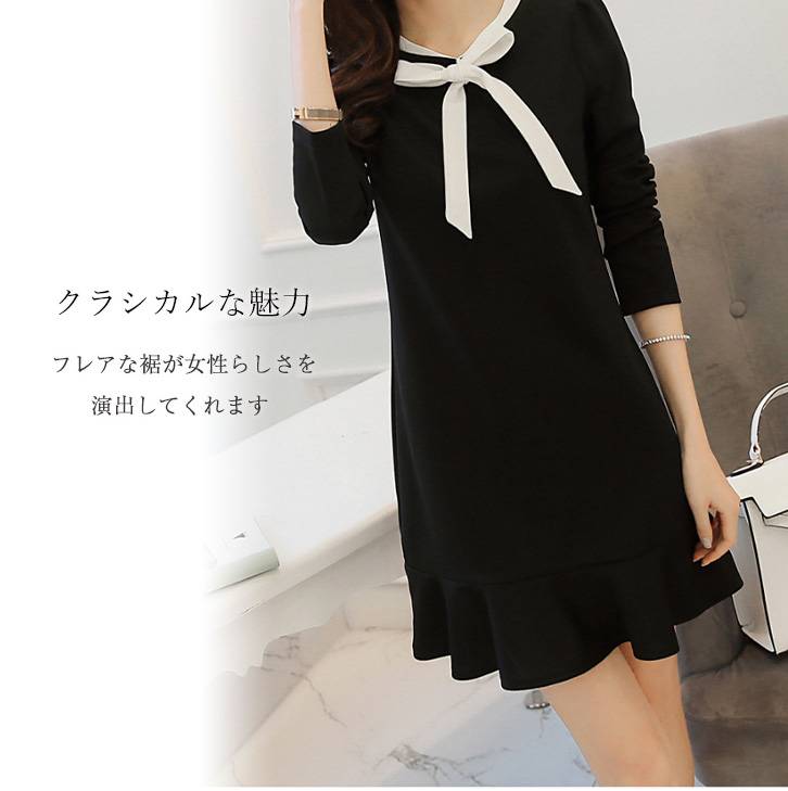 ワンピース 長袖 秋 春 膝上丈 レディース モノトーン 黒 かわいい シンプル レディースワンピース ワンピ ミニワンピ リボン クラシカル フレアワンピース ボウタイデザイン 通気性抜群 オールシーズン らくちん かわいい