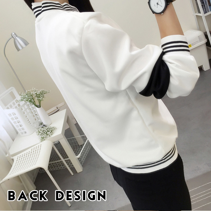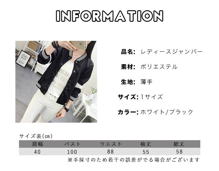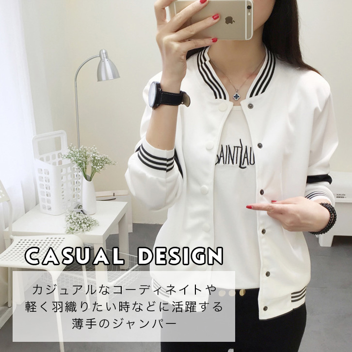 ジャケット ブルゾン レディース ジャンパー 羽織り カジュアル スポーティー レディースジャケット 薄手 秋 春 大人カジュアル シンプル 合わせやすい ブラック ホワイト モノトーン きれいめ フリーサイズ 全2色 ボタン開閉