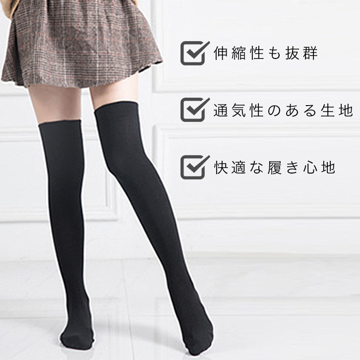 ニーハイソックス 靴下 レディース 無地 膝上丈 滑り止め付き 2足セット 伸縮性抜群 通気性抜群 履き心地快適 履き心地抜群 防寒対策 ロング丈 冷え防止 ブラック 下着 インナー カジュアルスタイル ハイソックス