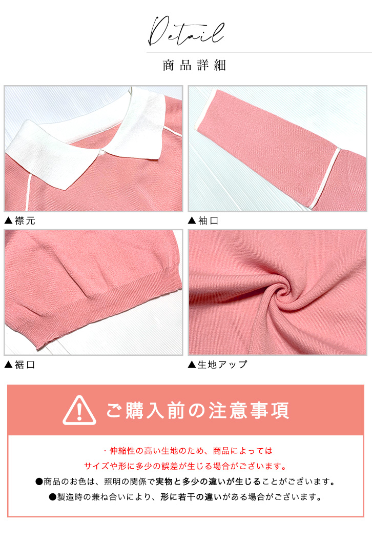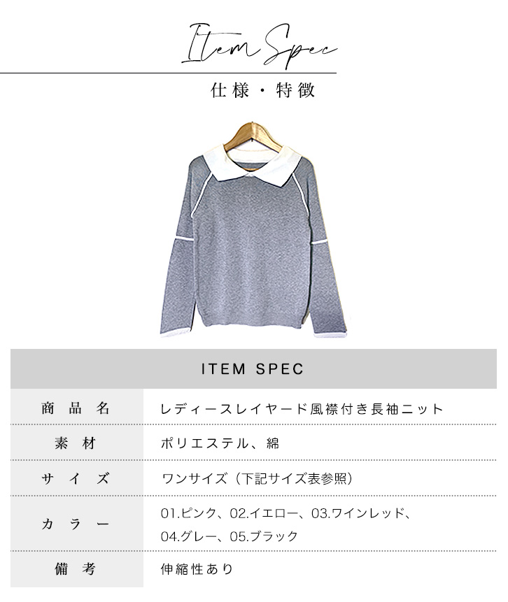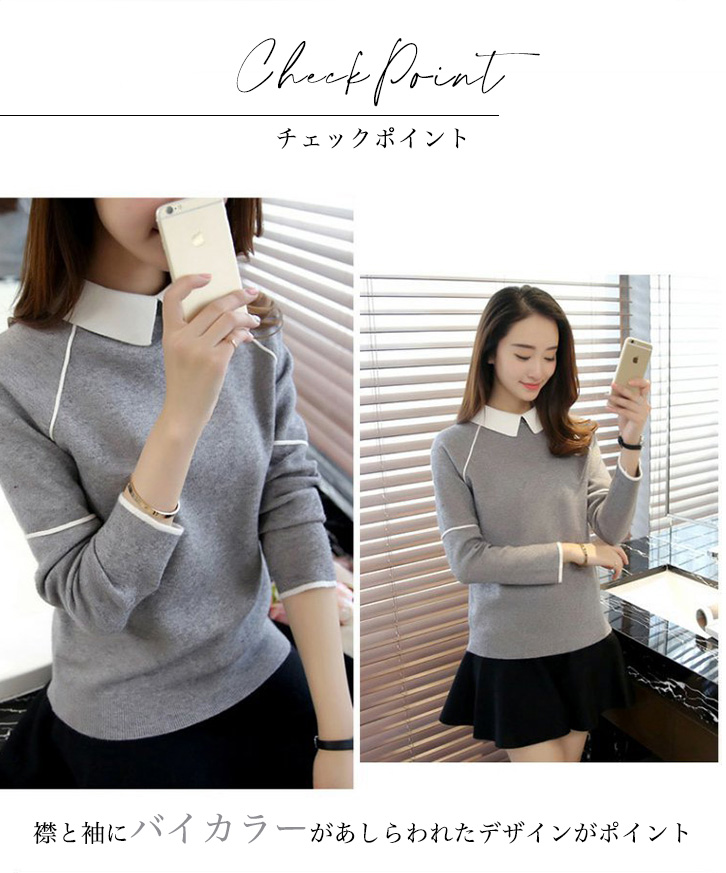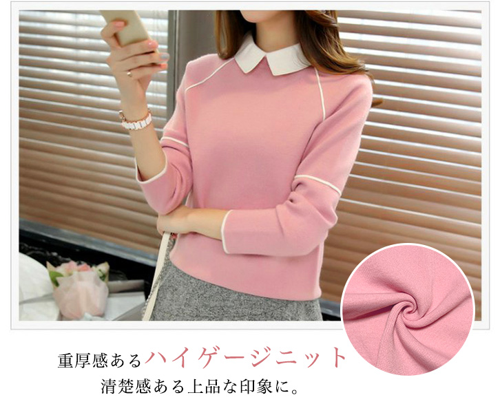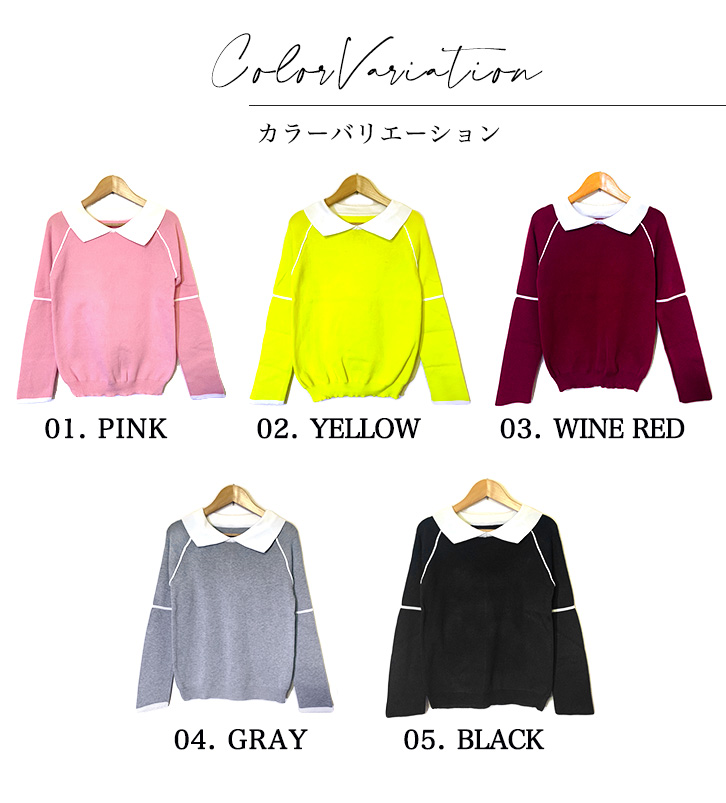 ニット レディース トップス 長袖 レディースニット 襟付き バイカラー ハイゲージニット 清潔感 かわいい シンプル カラー豊富 カラーバリエーション 全5色 全5カラー ピンク イエロー ワインレッド グレー ブラック