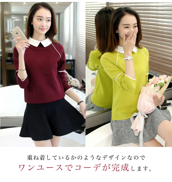 レイヤード風襟付きニット♪