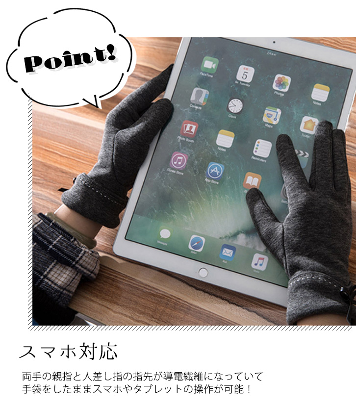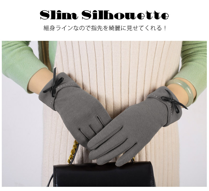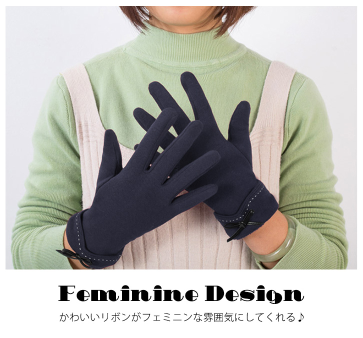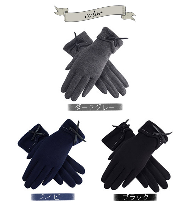 手袋 レディース リボン シンプル スマホ対応 スマートフォン操作可能 スマホ操作可能 フェミニン おしゃれ かわいい 細身ライン 裏起毛 あったか ふわふわ 防寒対策 ダークブルー ネイビー ブラック 全3カラー 上品