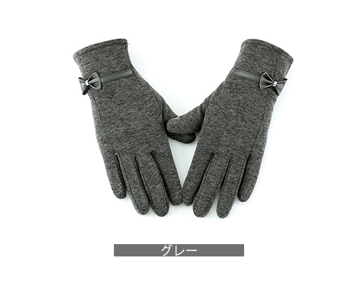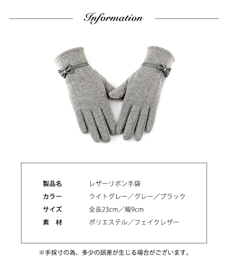 手袋 レディース リボン レザーリボン手袋 グローブ スマホ対応 スマートフォン操作可能 スマホ操作可能 フェミニン おしゃれ かわいい 裏起毛 あったか ふわふわ 防寒対策 ライトグレー グレー ブラック 上品