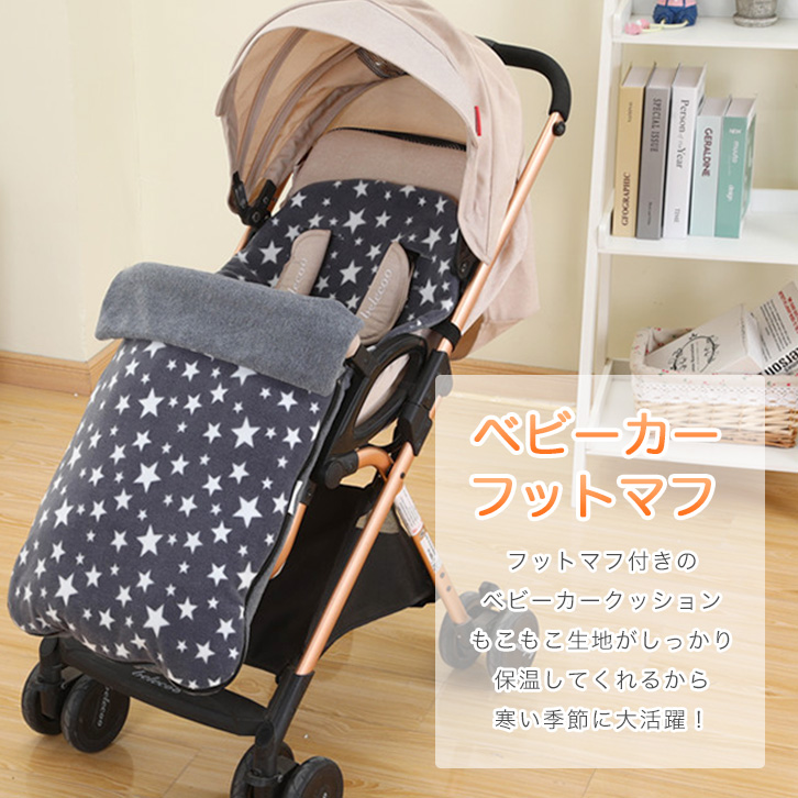 ベビーカーフットマフ ベビー用品 フットマフ ベビーカー 防寒 防寒カバー 星柄 もこもこ 保温 あったか 暖かい 防寒対策 肌触り抜群 取り外し可能 ブルー グレー ブラック シンプル かわいい おしゃれ お出かけ お散歩