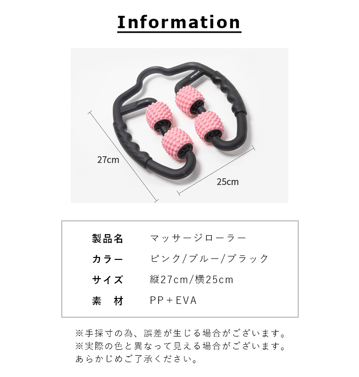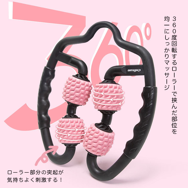 マッサージローラー ローラー むくみ防止 脚 足 むくみ解消 太もも 首 腕 むくみ取り 肩こり 脚痩せ 360度回転ローラー ピンク ブルー ブラック 二の腕 二の腕痩せ 持ちやすい 気持ちいい マッサージ 肩こり解消