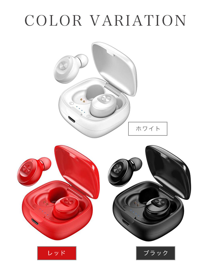 イヤホン Bluetoothイヤホン Bluetooth5.0 軽量 コンパクト ケース付き 持ち運び便利 高品質 音楽 通話 快適 ノイズ軽減 省電力 負担軽減 超軽量 充電ケース付き 全3色 ホワイト レッド ブラック 全3カラー