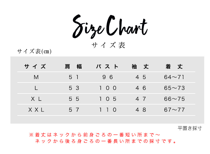 ※着丈はネックから前身ごろの一番短いところまで~ネックから後ろ身ごろの