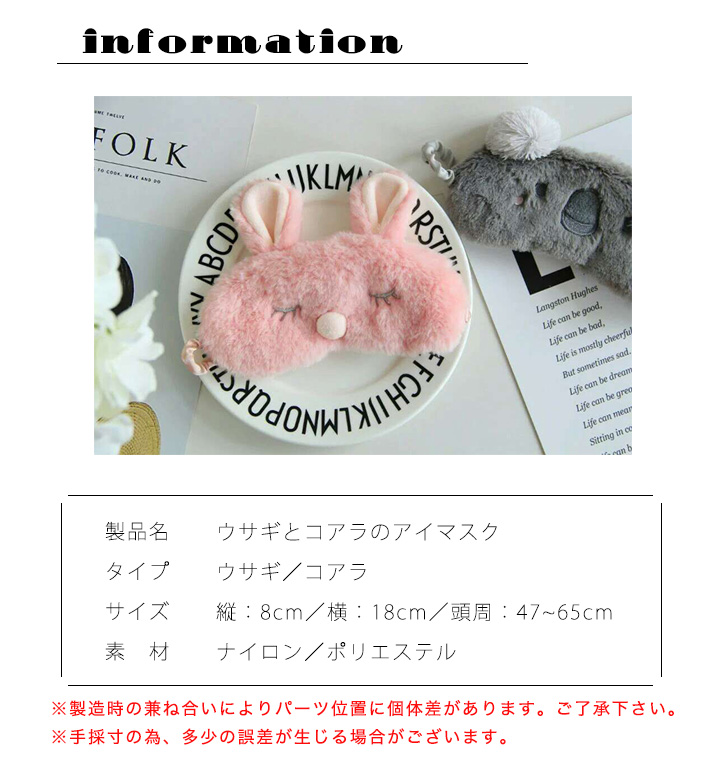 アイマスク アイ マスク アニマル 動物 睡眠 アイピロー リラックスタイム ふわふわ やわらかい つけ心地抜群 リラックス ウサギ コアラ かわいい キュート 快眠 スリープアイマスク バス 飛行機 旅行 新幹線 旅行用