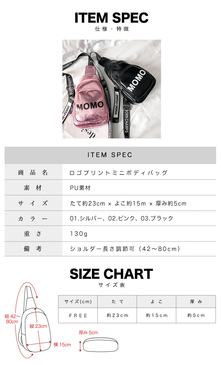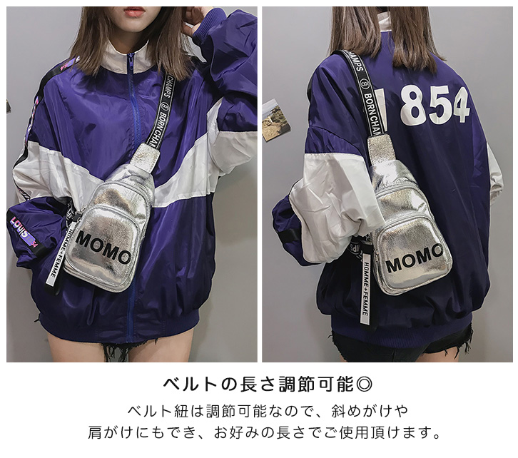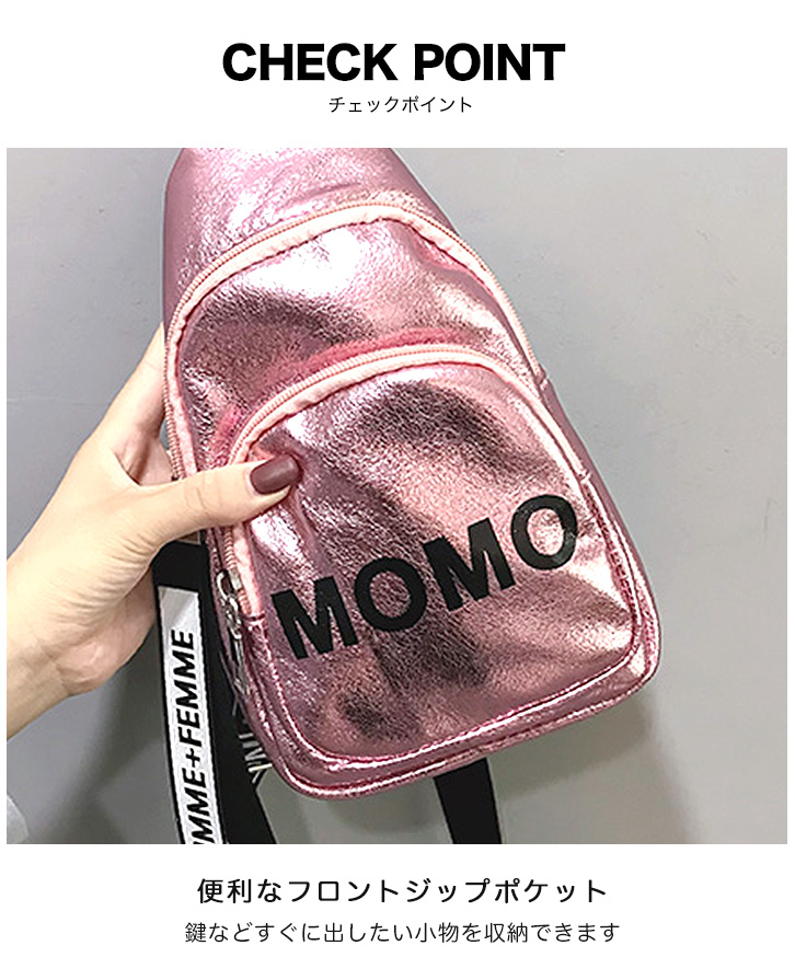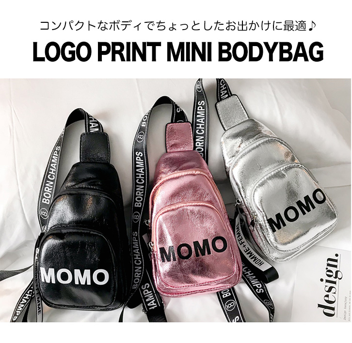 ボディバッグ レディース ショルダーバッグ 斜め掛けバッグ ミニバッグ コンパクト おしゃれ ロゴ入り デイリー スポーティー トレンド オシャレ かわいい 収納力抜群 シルバー ピンク ブラック メタル メタリック 全3カラー