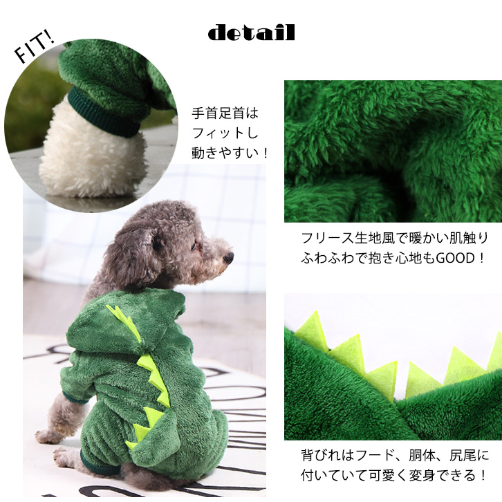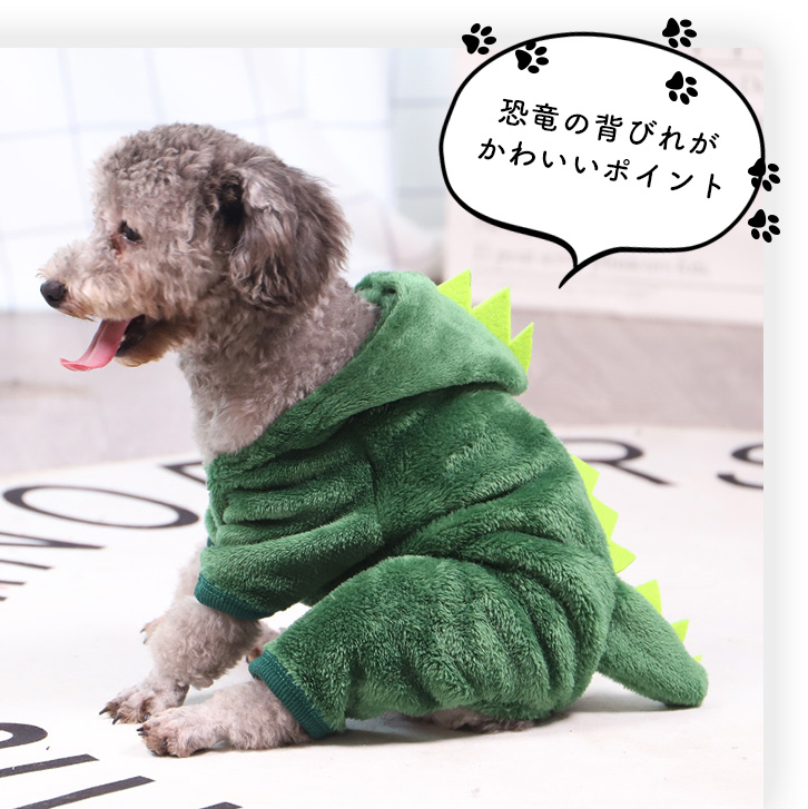 ドッグウェア ドッグ用 犬服 犬用服 ワンちゃん 犬用 恐竜 ダイナソー かわいい おしゃれ インパクト抜群 キュート ペット用品 普段使い ハロウィン 防寒 お散歩 寒さ対策 フリース素材 あったか ふわふわ 背びれ