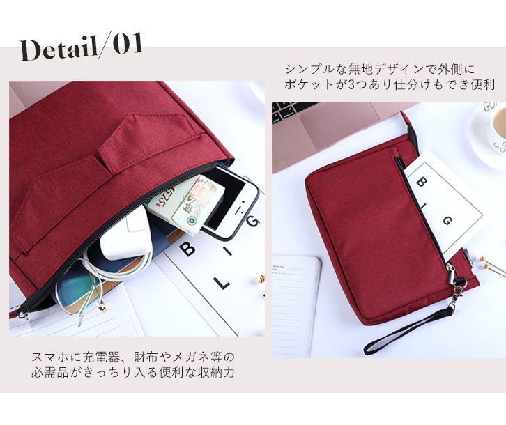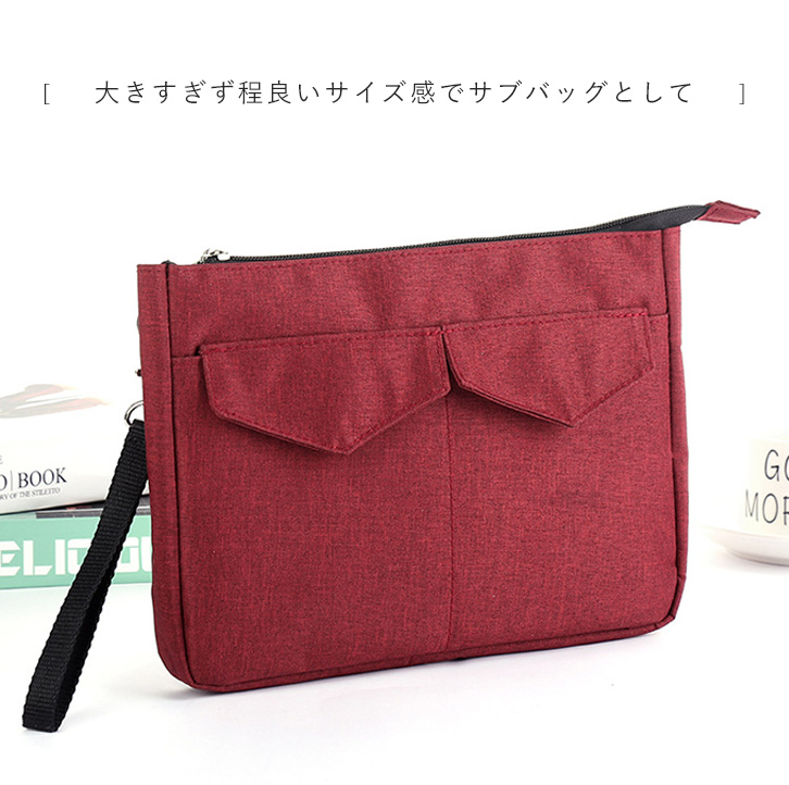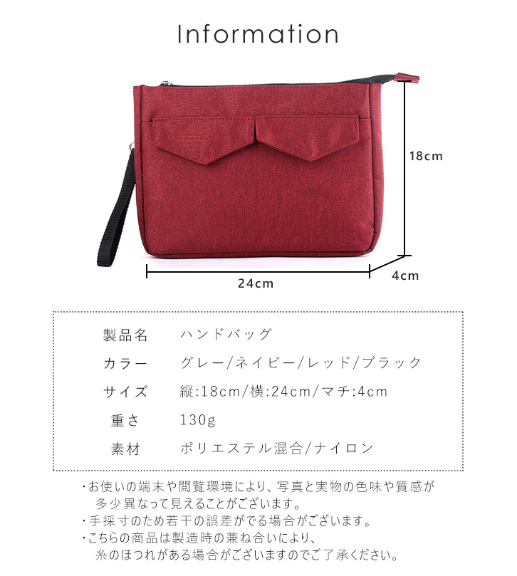 バッグ ハンドバッグ クラッチバッグ セカンドバッグ シンプル コンパクト 持ち運び便利 旅行 お出かけ デイリー 収納力抜群 無地 収納ポケット付き ファスナー開閉 ハンドストラップ着脱可能 カラー豊富 全4色