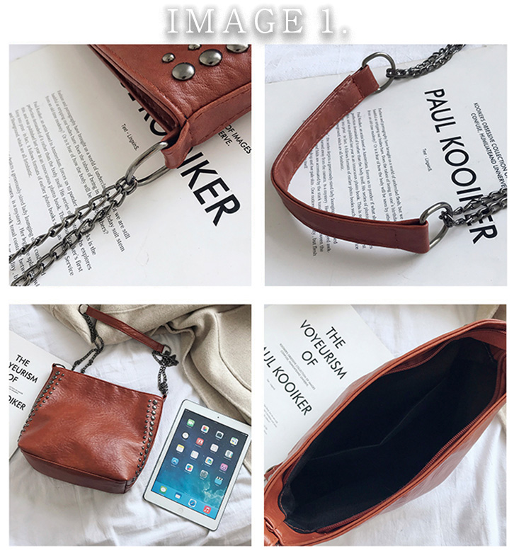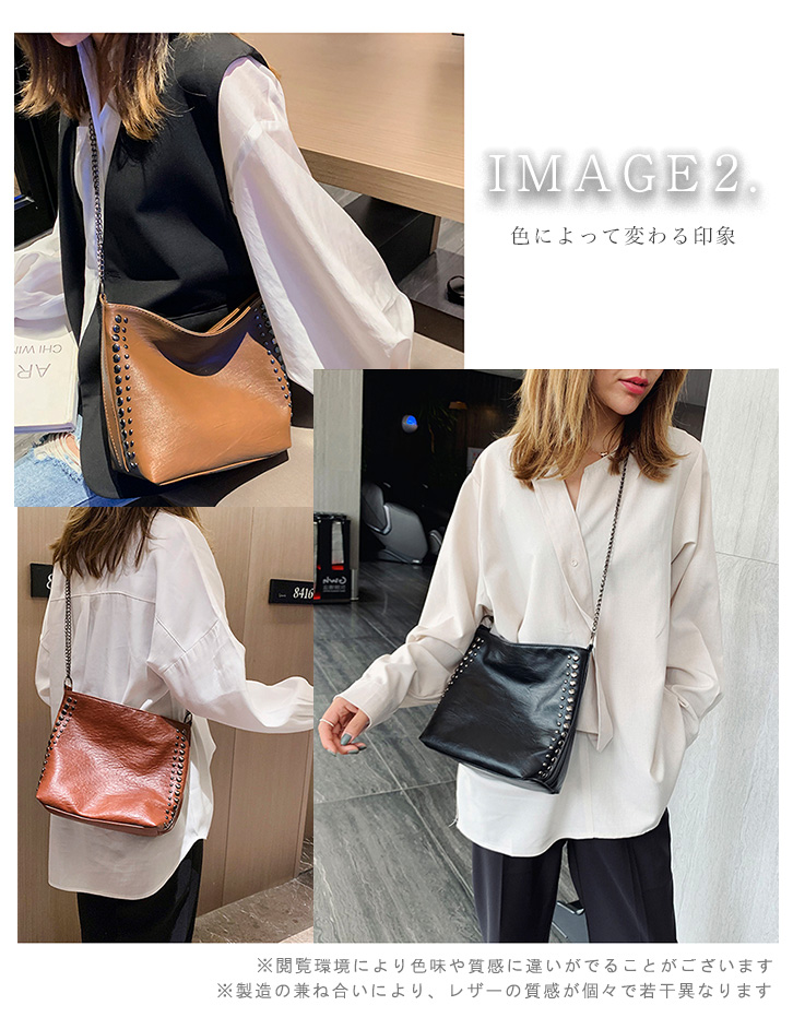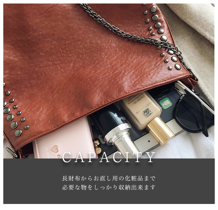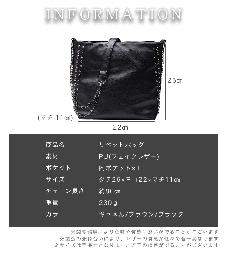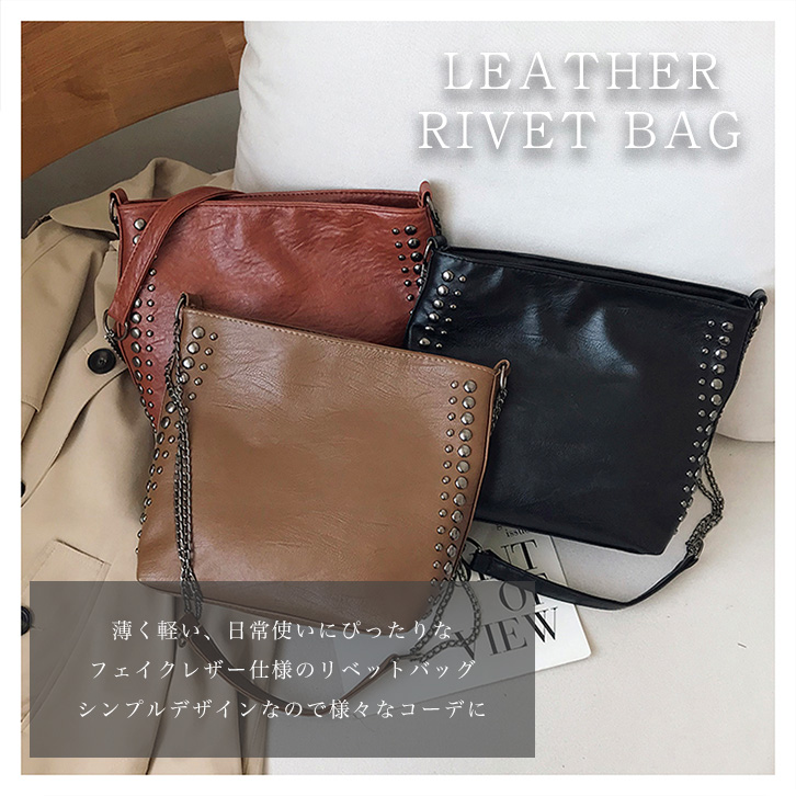 バッグ レディースバッグ ショルダーバッグ ショルダー 肩掛けバッグ リベットバッグ リベット フェイクレザー 薄い 軽量 デイリー シンプル リベットスタッズ フェイクレザー 大人かわいい キャメル ブラウン ブラック