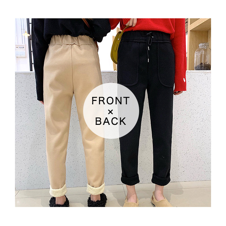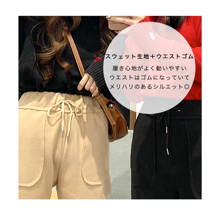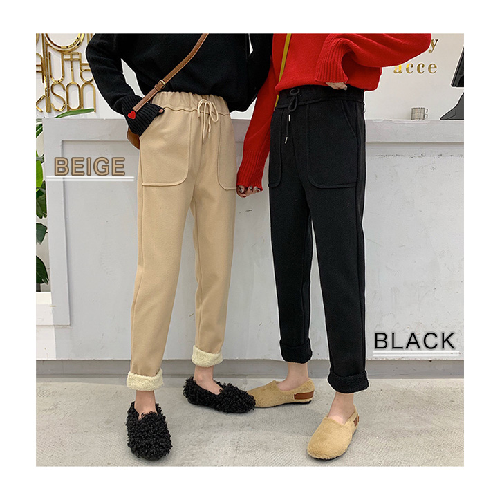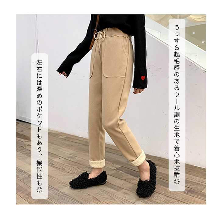 パンツ ボトムス レディースボトム 長ズボン テーパードパンツ テーパード シンプル 着回し抜群 秋冬 秋 冬 着心地抜群 ボア裾 ウエストゴム らくちん スウェット生地 合わせやすい 全2カラー ベージュ ブラック