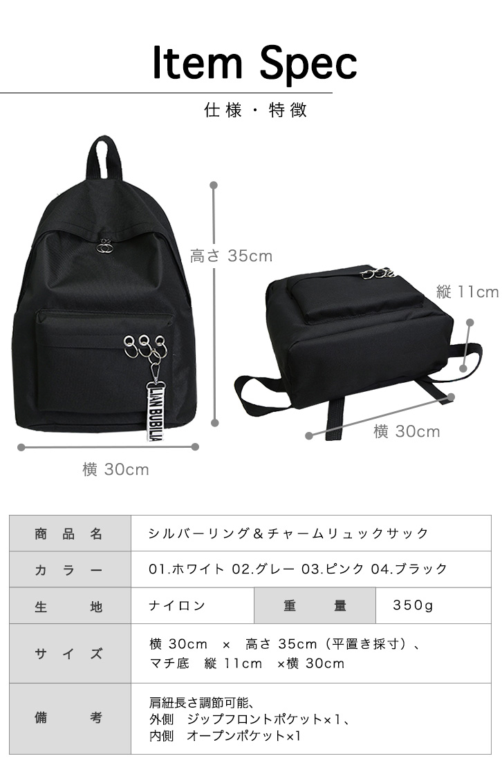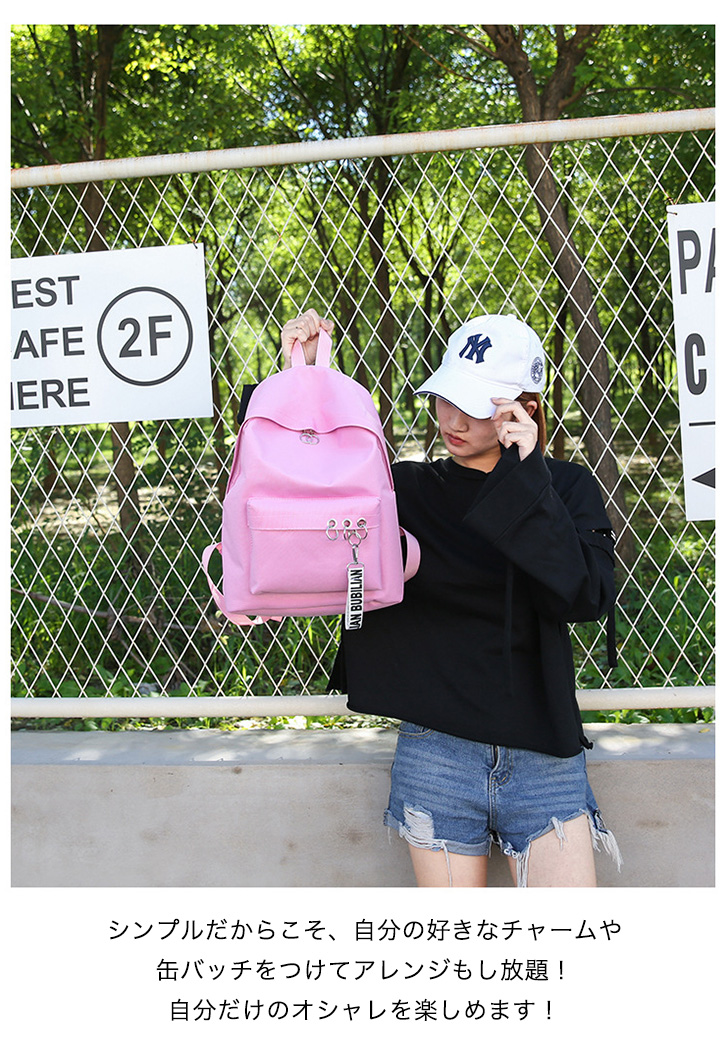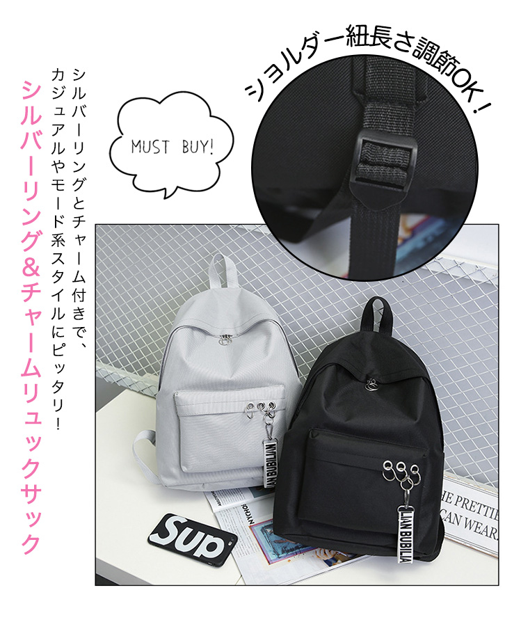 バックパック リュック シンプル チャーム付き シルバーリング レディース 大容量 カジュアル モード系 収納力抜群 通勤 通学 旅行 トラベル シンプル アレンジ自由自在 おしゃれ かわいい 大容量収納可能