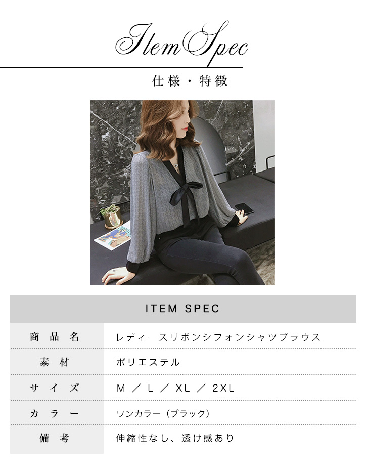 ブラウス レディース 長袖 秋 冬 春 シフォンシャツ リボンタイ 透け感 上品 エレガント シフォン生地 綺麗め 可愛い 着回し抜群 さらさら 着心地快適 通気性抜群 オールシーズン 可愛い 大人フェミニン ブラック 【カラ